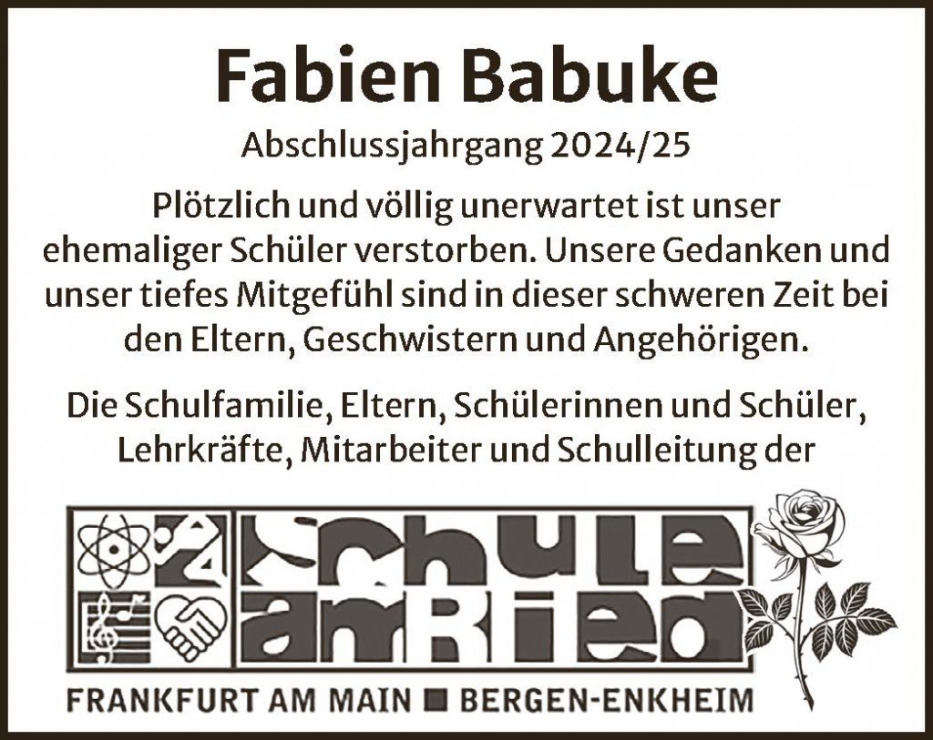Am Mittwoch, den 01.10.2025, steht das Laufen ebenfalls im Fokus unserer Schule. Hier nehmen alle Schülerinnen und Schüler der Jahrgänge 5 bis Q1 an dem erstmals durchgeführten Spendenlauf unserer Schule teil. Losgelöst vom Wettkampf nach neuen Bestzeiten und Jahrgangssiegern geht es beim Spendenlauf darum, gemeinsam für das Gemeinwohl zu laufen. Jede gelaufene Runde im Riedstadion hilft dabei, Spendengelder für den Förderverein der Schule am Ried e.V., den Tierschutzverein Frankfurt e.V. und S.O.S. Kinderdörfer zu erlaufen.