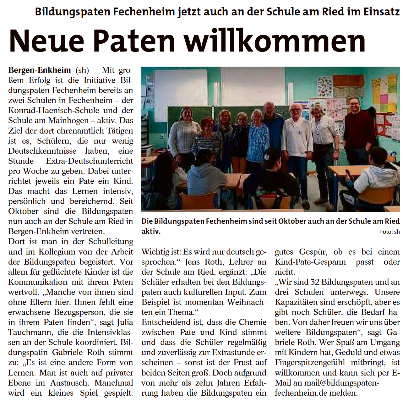 Allgemein Bildungspaten jetzt auch an der SaR 21. Dezember 2023 Hinkel Der Bergen-Enkheimer vom 9.12.2023