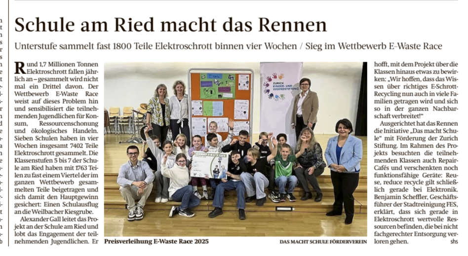 Unsere „Schule-am- Ried-Recycling-Champions“ haben abgeräumt und beim diesjährigen E-Waste-Race den ersten Platz gewonnen!