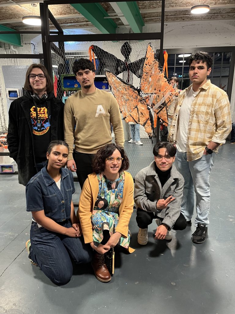 Der DaZ-Förderung-Kurs (9-13. Klasse) geleitet von der Lehrkraft Frau Milici, nahm an dem Schirn Domino Projekt im November teil. Die Schüler haben unter der Führung des Kunstpädagogen und Projektleiters Renè Philipp Sander die Ausstellung der Künstlerin Stephanie Comilang „Koordinaten deiner Zukunft“ besucht. Die Ausstellung hat die Arbeit mit den Schülern inspiriert und ist der Anhaltspunkt für die Workshops gewesen. Insgesamt haben die Schüler sich vier Mal getroffen und mit der Hilfe eines Kunstpädagogen an drei Projekten gearbeitet.